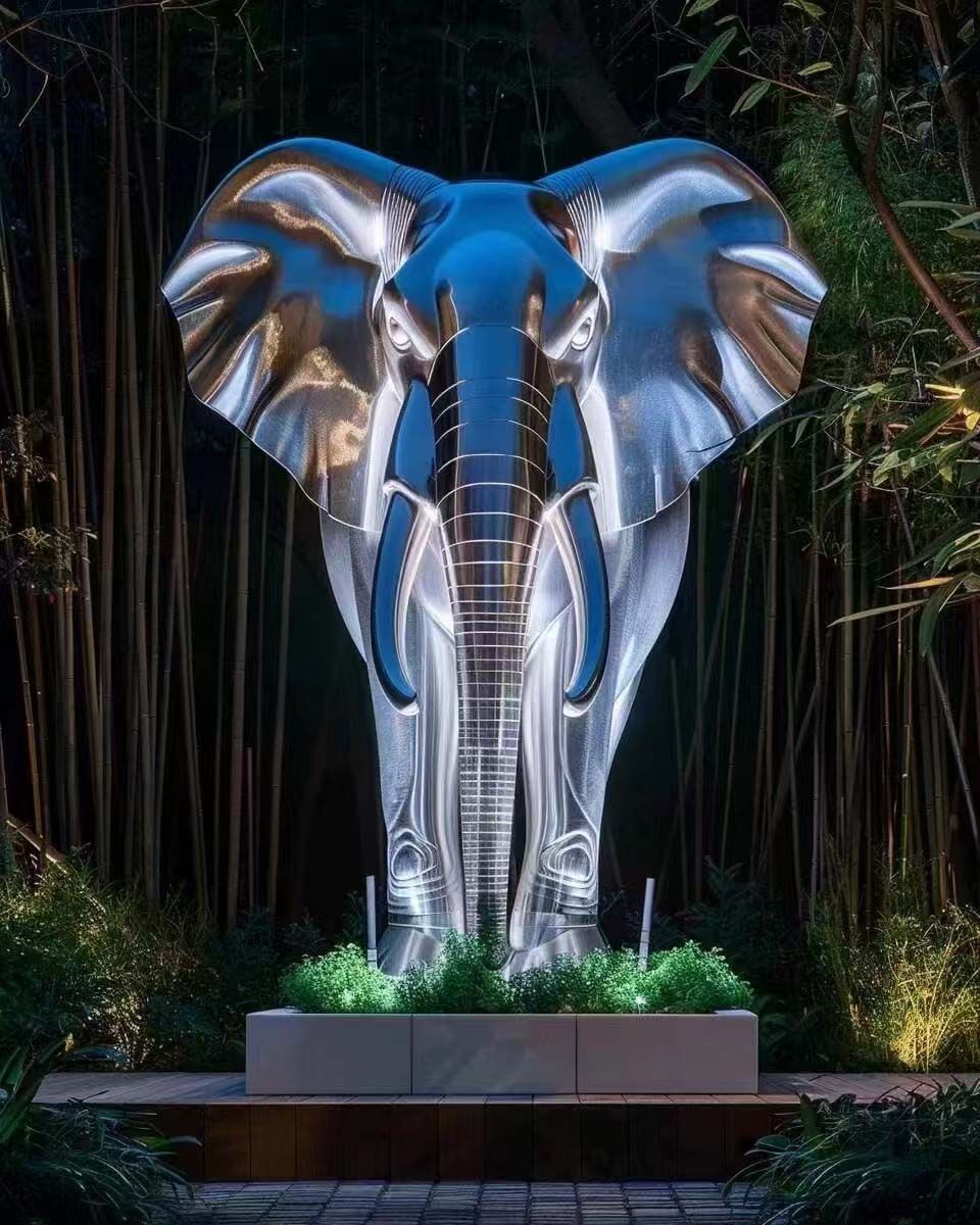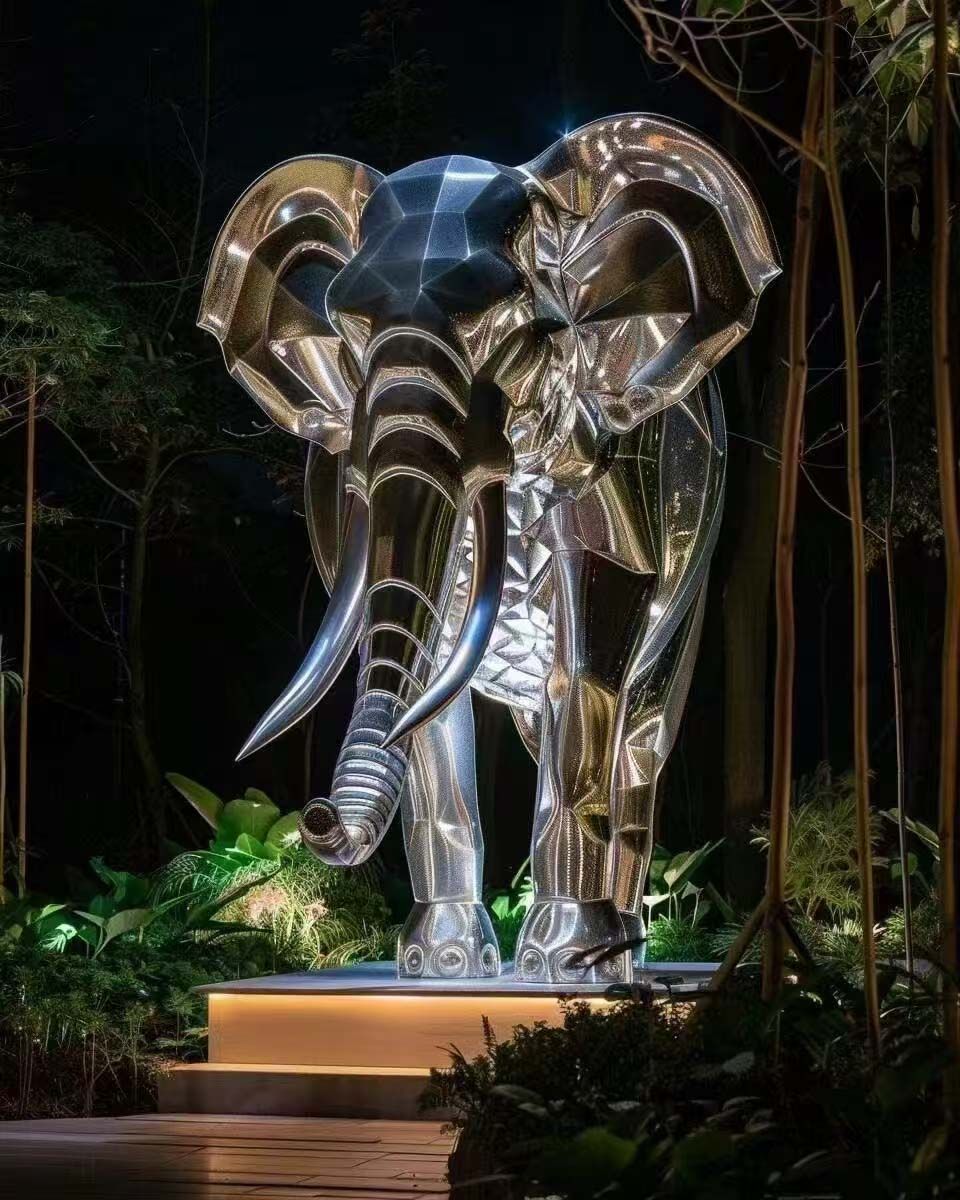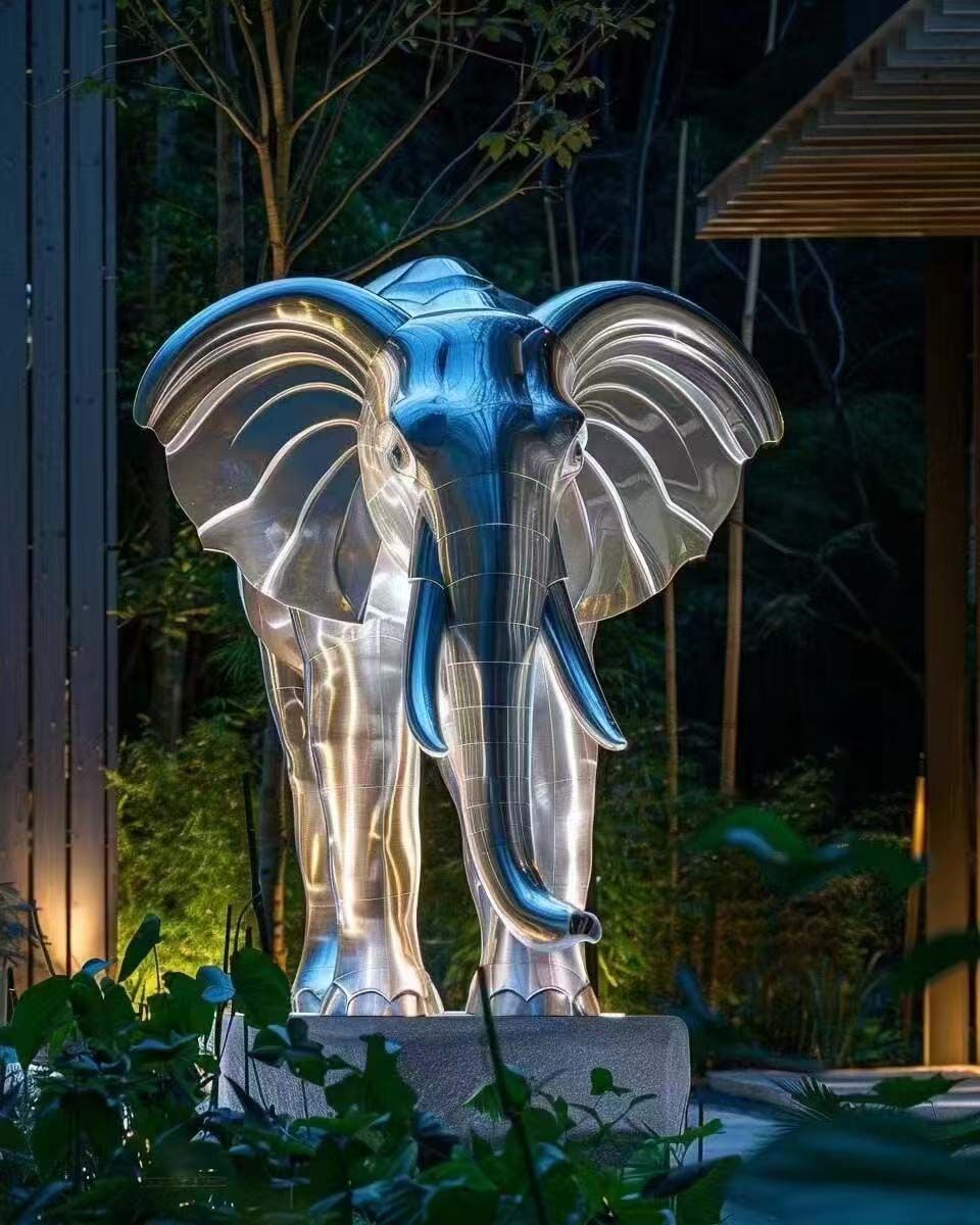 The addition of spotlights can greatly enhance the artistic expression of stainless steel elephant sculpture. Stainless steel material itself has a unique luster, in the spotlight, the sculpture surface will form a more distinctive light and shadow changes, so that the outline of the elephant is more clear, three-dimensional, as if giving the sculpture a new vitality, and can better attract the audience's attention, through the clever lighting design, so that the sculpture and its surroundings at night to form a whole visual effect, enhance the sense of space levels and coherence, enhance the entire The artistic quality of the environment, so that people can appreciate the unique charm of the sculpture in different angles and light.