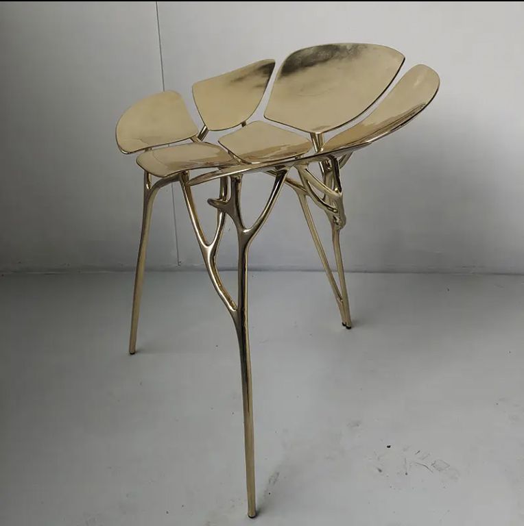 Brass chair, shaped design inspired by the shape of the tree. Unique shape shows creativity, free from traditional constraints. The brass material gives it a sense of texture, and the tree design brings a sense of natural beauty. It symbolises freedom, as if you were in a forest. It is not only a chair, but also a piece of art, adding unique charm to the space and letting people feel the perfect fusion of creativity and nature in use.