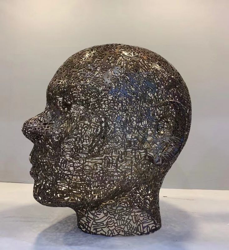 A laser is used to carefully carve out a variety of connotative words on the stainless steel plate. The next step is the hand forging process. Using the words as a vein, the craftsmen gradually hammered and shaped the contours of the human figure. From the width of the forehead to the firmness of the chin, every line is full of craftsmanship, and the cold stainless steel seems to be given a soul.