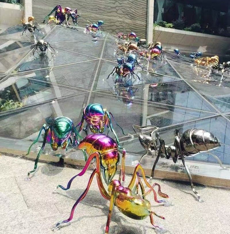 LOOK! It's a swarm of ants! Yes, it's made of stainless steel. They can be in your garden, they can be in your office, or they can be the finishing touch in a certain space! All of them are forged and shaped by hand and plated in rainbow mirror colors, which makes them shine especially bright in the sun or in the night light.