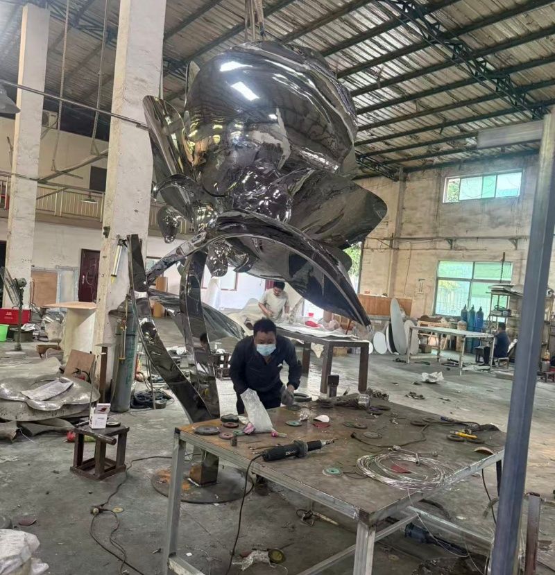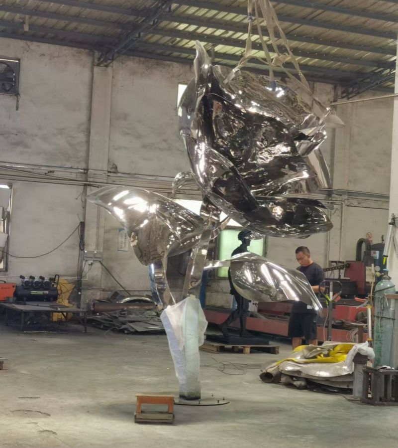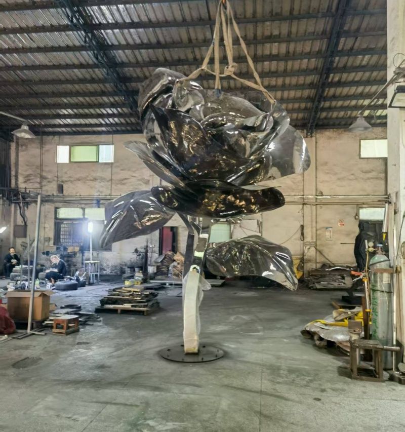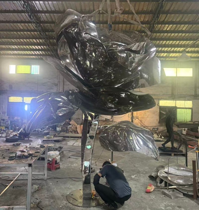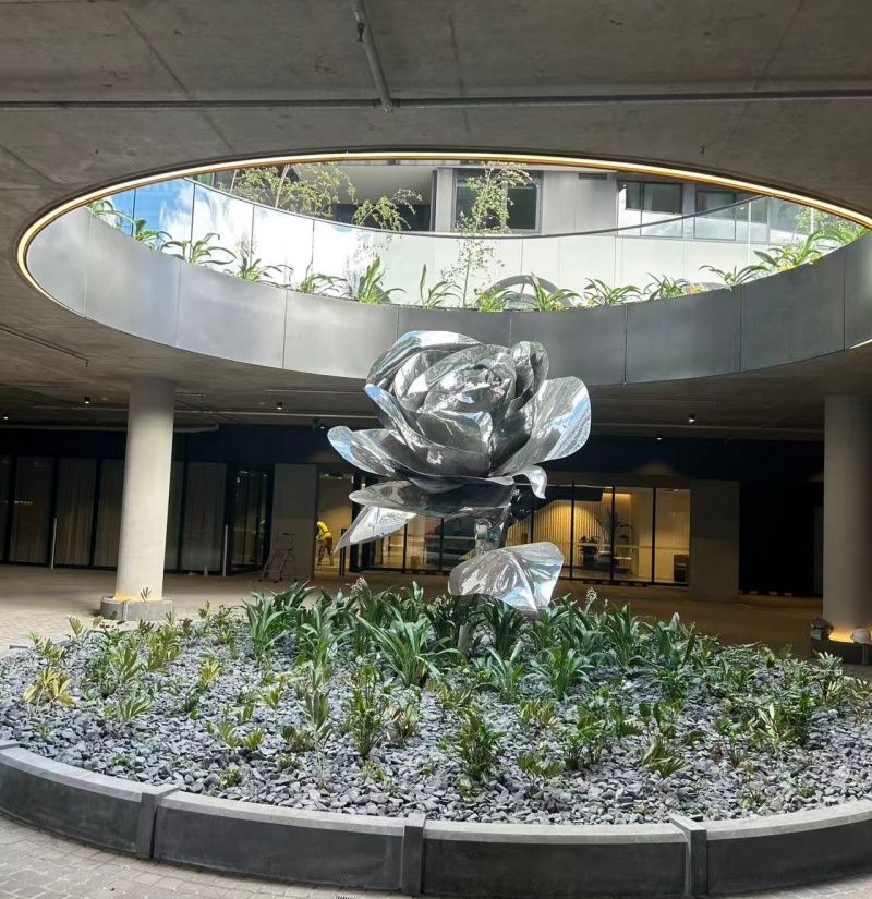 #stainless steel rose sculpture # mirror polished stainless steel art # metal garden sculpture # outdoor stainless steel artwork # handmade metal sculpture # public art installation # contemporary garden decor # stainless steel forging art#